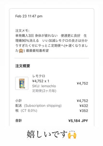 身体が疲れない 便通更に良好 生理痛90%消える いい加減レモクロの良さは分かりすぎたくせにやっとこ定期便へ(←遅くなりました🙈)